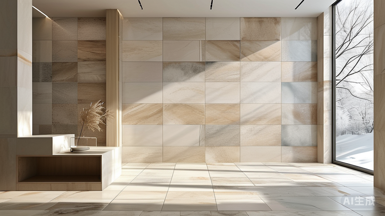 色彩的选择如同在冬雪覆盖的荒原上,寻求一线柔柔的曦光。选用淡雅米白、柔和的燕麦色或者温润的浅灰铺开瓷砖的主调,它们如被晨光微微浸透的帆布,自有沉静的温度。那纯粹无纹的纯白,需谨慎用之,而一点木纹砖错落铺陈,则犹如在冰河之上洒下几片枯叶,自然的温度便悄然潜入其中。