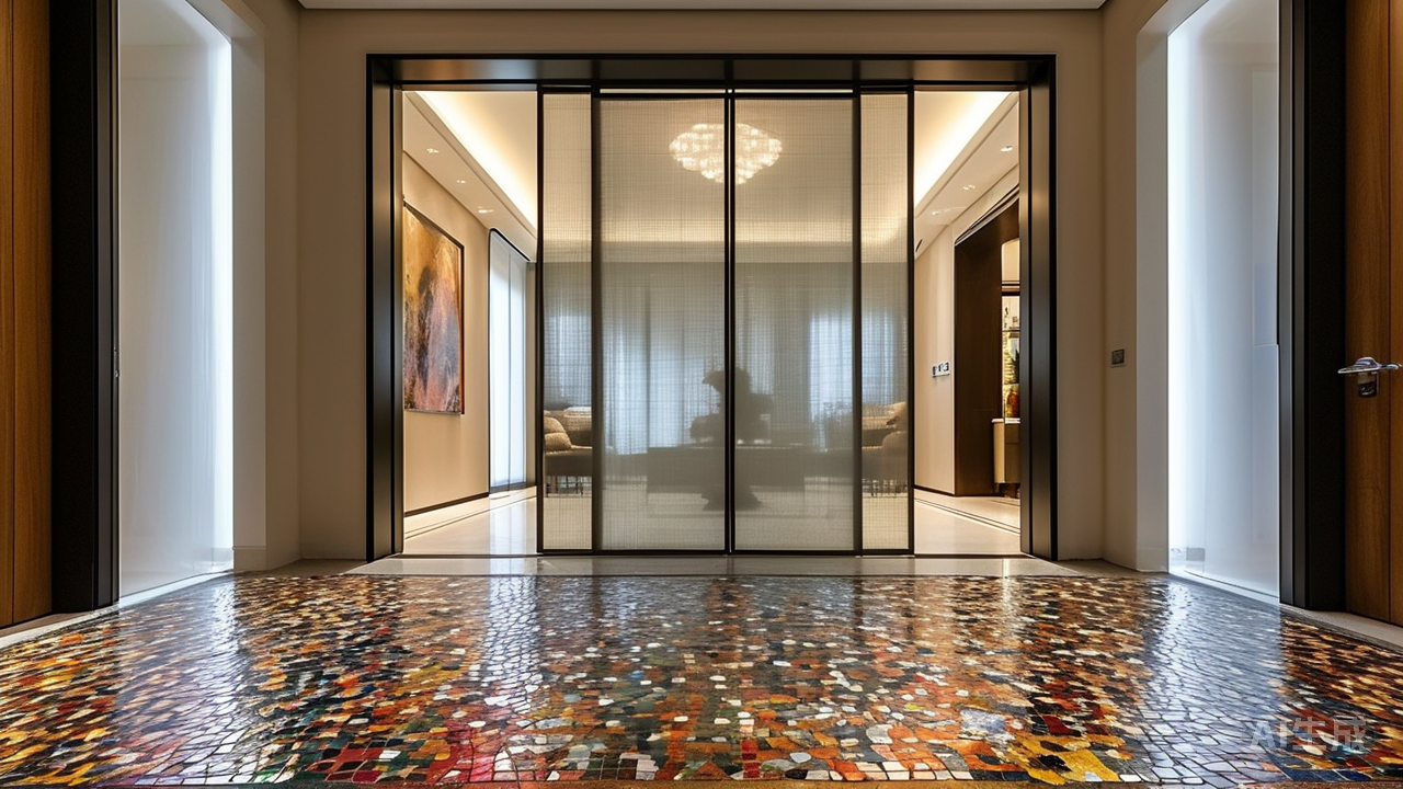 地面:脚下的艺术馆 将艺术从墙面延伸至脚下,马赛克为地面带来了无限趣味。在入户玄关或走廊尽头,用马赛克拼贴一个独特的花纹或徽章,仿佛铺设了一张华丽的迎宾地毯,每一步都踏在艺术之上。相较于大面积的地毯,马赛克地面更易清洁打理,且经久耐用。设计师们甚至利用不同颜色的马赛克,在开放式的空间中无形地划分出功能区,让流畅的动线里暗藏精巧的节奏感。踩在这样精心设计的地面上,生活仿佛也变成了一场在艺术馆中的漫步。