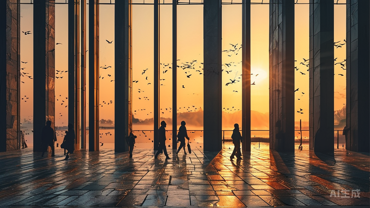 山形水意,并非拘泥于具体的峰峦波影。新中式所求的山水,贵在取其神韵,得象外之致。一片纹理,可似山脊绵延,在墙根处勾勒峻峭剪影;另一片水波暗涌,在走道间蜿蜒出静水流深。砖与砖的缝隙,无意间成了山涧幽处,或是浮云出岫的留白。设计师的匠心,便是在这看似无意的排布中,让“山形”与“水意”在空间中彼此顾盼,构建出“可行、可望、可游、可居”的灵境图卷。置身其中,行走不再是物理的位移,而是心灵在层叠山水间的神游与栖居。 空间因此而“活”。自然光穿透窗棂,温柔拂过石面起伏的纹路,光影如笔,以分秒为节奏勾勒山水的明暗与呼吸。人行走其上、倚靠其旁,身影也被纳入这流动的画卷,成为意境的一部分。清晨微曦中,瓷砖表面仿佛氤氲着薄雾山岚;日暮斜晖里,又似有归鸟掠影栖于石上。砖石无言,却通过光影与人影的交织,吐纳着晨昏四时的气息,让空间真正成为时间与生命共同书写的诗篇。