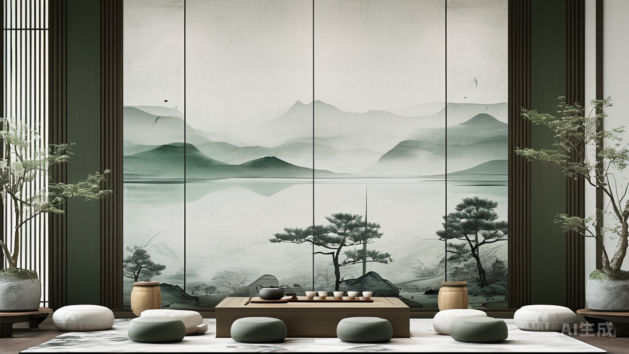 此间意境,最终归于心的沉潜。新中式禅意的至高境界,不在堆叠繁华,而在澄怀观道。那些或隐或显的山水纹理,恰似不言之教,引导视线与心神向内收束。一方茶台,几件古意家具,在山水背景的映衬下更显素朴清雅。空间在此时化作一泓静水,能映照天光云影,亦能沉淀纷繁世虑。心随砖上山水流转,在无声的石语中寻得片刻的归宁与澄明——所谓“一石一世界”,那纹路深处,正是通向内心幽境的秘径。