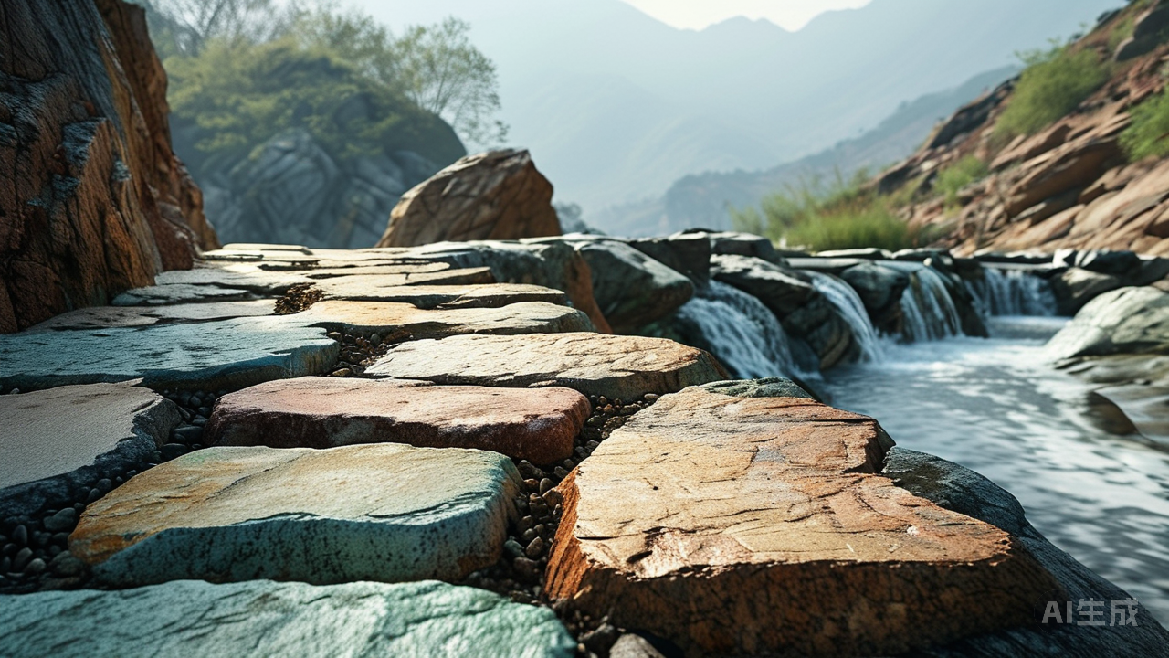 如何选择具有自然边缘的板岩砖为您的田园风花园小径增添野趣寻常石板小径,刀劈斧削太过工整,每每衬得田园风光显出几分拘谨来。那板岩砖若要生出野趣,须得寻得那自然边缘的才好——如同山野岩层偶然崩落、又被岁月流水温柔啃噬的碎片一般,带着大地原始的肌理。 石料挑选当存几分随性。不必苛求每块形状精确规整,反而那些厚薄不一、轮廓参差、边缘带着天然崩裂痕迹的方是上品。那些边缘粗粝的板岩,恰如自然之手随意捏就,纹路蜿蜒、深浅不一,每块都暗含一段大地深处沉默的故事。色泽也不必强求一色,或青黛,或灰褐,抑或深浅交织的赭石之色,皆可收纳。杂然铺陈,便如同将山野的片段挪移到了足下,粗犷里藏着天地间的秩序。