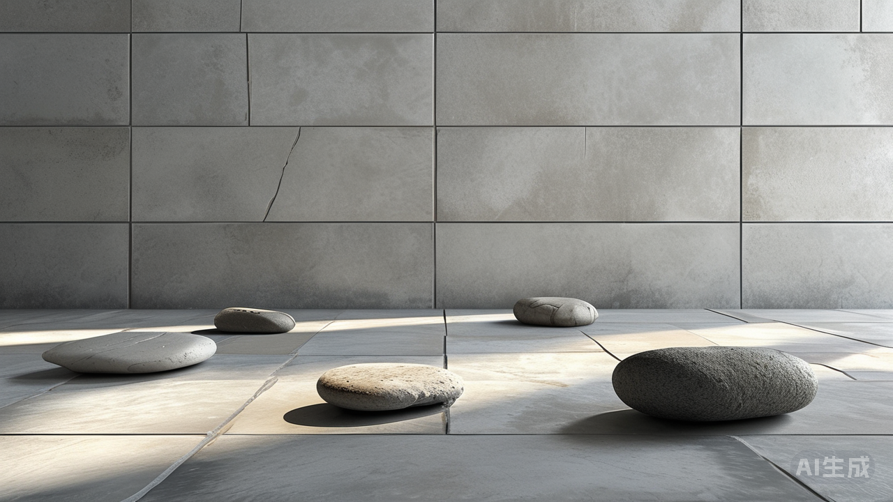 光,是这场无声对话的最终叙述者。微水泥的雾面如宣纸般温柔地吸纳光线,滤去刺目光芒,留下朦胧柔和的纱幕。瓷砖的肌理则如古老的石刻,在漫射光下显出深浅的沟壑与光影的韵律。当光线漫过微水泥的平面,轻抚瓷砖粗粝的浮雕,时间便在其中慢下来。那幽微处,微水泥的底色衬着瓷砖的斑驳,仿佛枯山水的白沙上,几颗静默的石头正吞吐着岁月的呼吸。